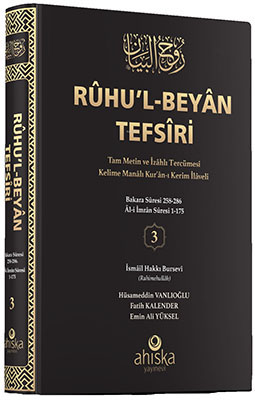 Şeyh İsmâîl Hakkı Bursevî Hazretleri’nin rivâyet, dirâyet ve özellikle tasavvufî yönü ağır basarak kaleme aldığı muazzam eseri; “Rûhu’l-Beyân fî Tefsîri’l-Kur’ân”ın tercemesi 3. Cilt Ahıska Yayınevinden çıktı.