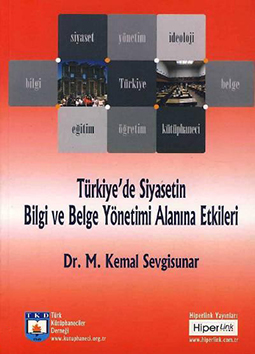 Türkiyede Siyasetin Bilgi ve Belge Yönetimi Alanına Etkileri adlı bu kitap, alandaki gelişmeleri kronolojik bir sıra içerisinde irdelemektedir. Yazar, bilgi ve belge alanında yaşanan gelişmeleri: Ülkenin entelektüel kadroları arasında, tam anlamıyla «özgür bir düşünsel zemin» ... kurulamamıştı. Farklı fikir ve bakış açılarına tahammül ise oldukça sınırlıydı. Düşün ürünlerini topluma sunan, başta kütüphane kurumu olmak üzere; ilgili diğer bütün kurumlar, çağdaş anlamda bir taraftan yeniden kurul ...